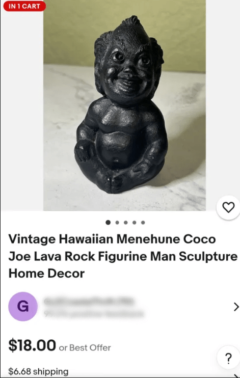 In 2026 speak? $650 we take Venmo and Cashapp. Now I’m sure the seller is a fine person and this is all a bit of fun, but the point is always this. caveat emptor. “Buyer beware”. A quick Ebay search found another menehune for the low low price of $18 + shipping. (or best offer!!)